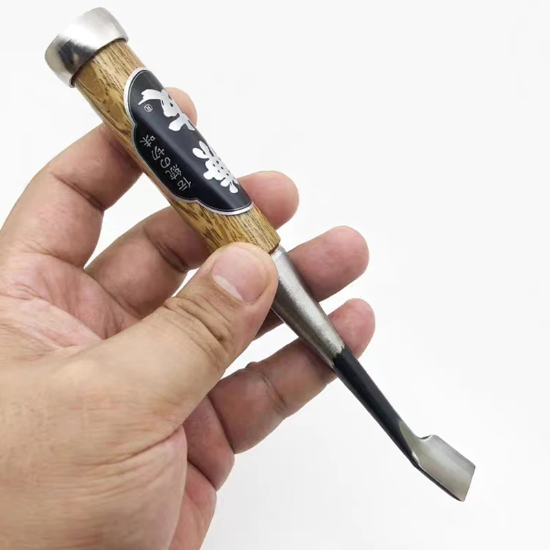 Son herramientas manuales de talla y acabado de madera con hoja curvada, fabricadas en acero SK5 (alto carbono) para obtener cortes limpios y controlados en superficies complejas o interiores.