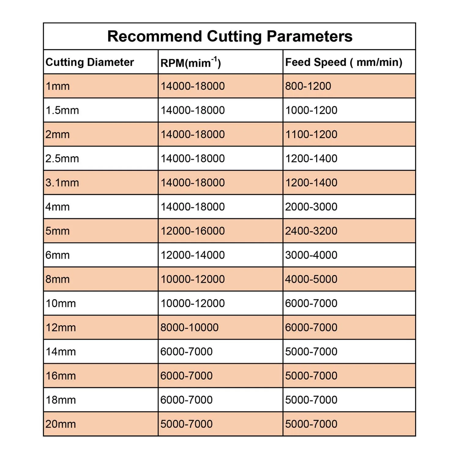 (4) Diámetro de corte: 1 mm, 2 mm, 3 mm 4 mm, 6 mm, 8 mm, 10 mm, 12 mm, etc.;