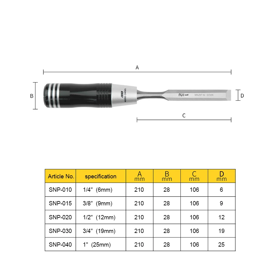 Tabla técnica – Juego de 5 cinceles japoneses Kakuri