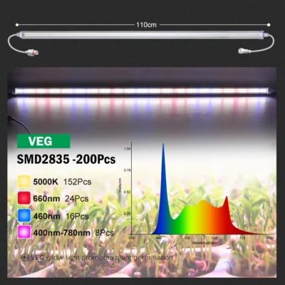 La Luz LED tubo de cultivo SMD2835 de espectro completo está diseñada para proporcionar una iluminación eficiente y equilibrada para el crecimiento saludable de bonsáis, plantas ornamentales, esquejes y semilleros. Gracias a la tecnología LED SMD2835, ofrece alta eficiencia lumínica, bajo consumo energético y una excelente estabilidad térmica, ideal para uso prolongado en interiores.