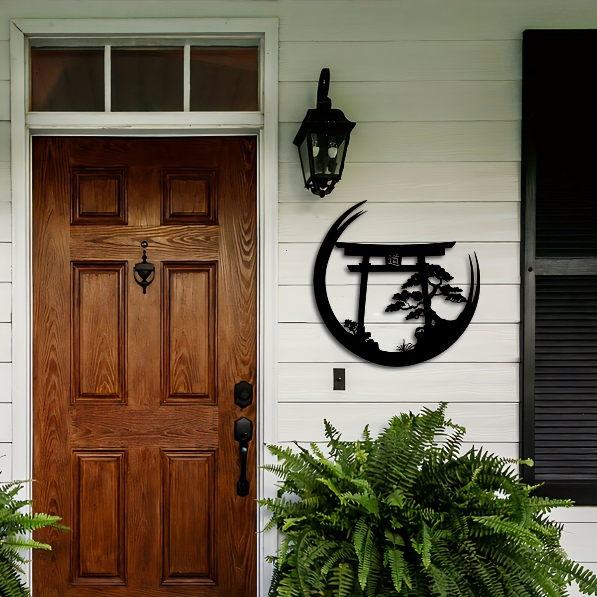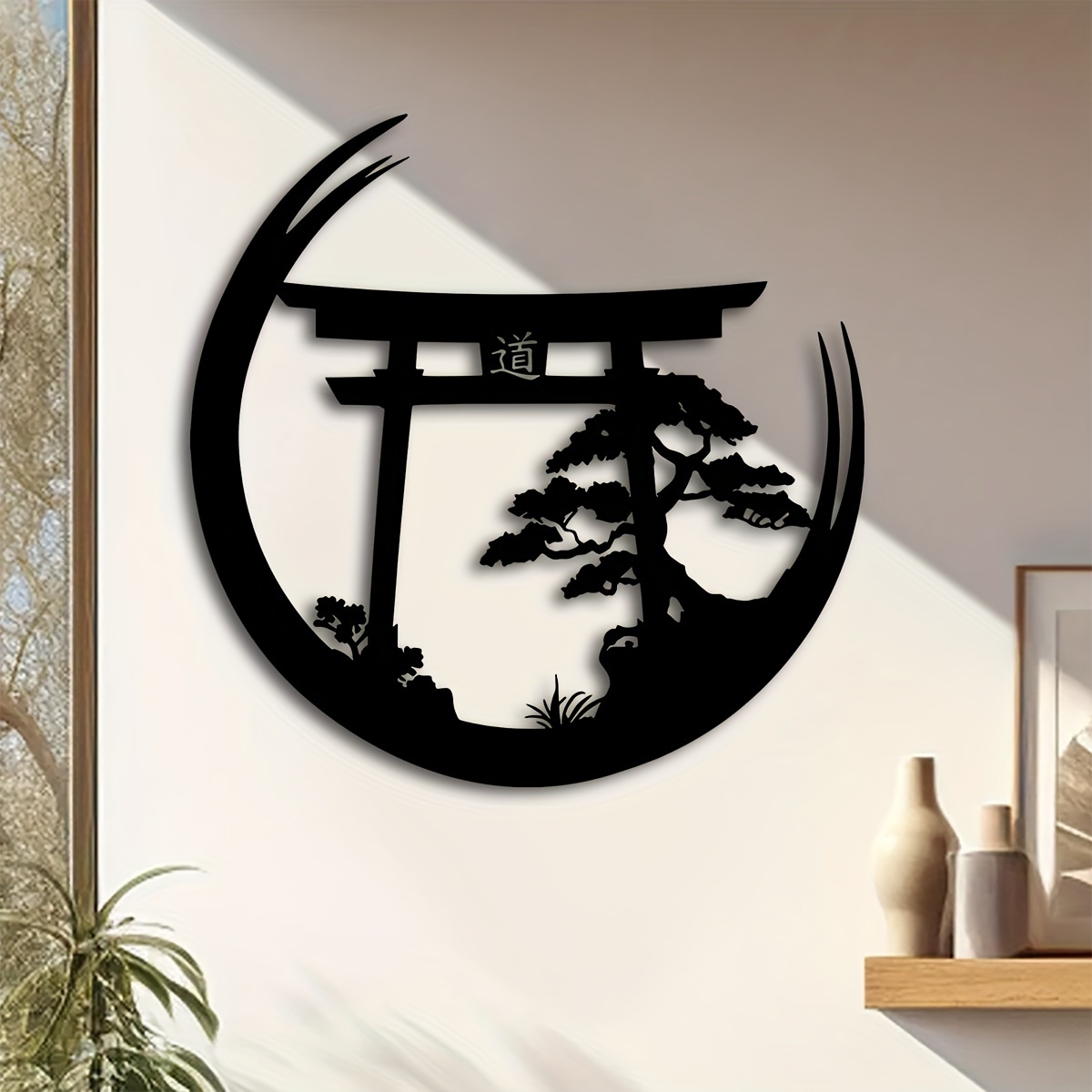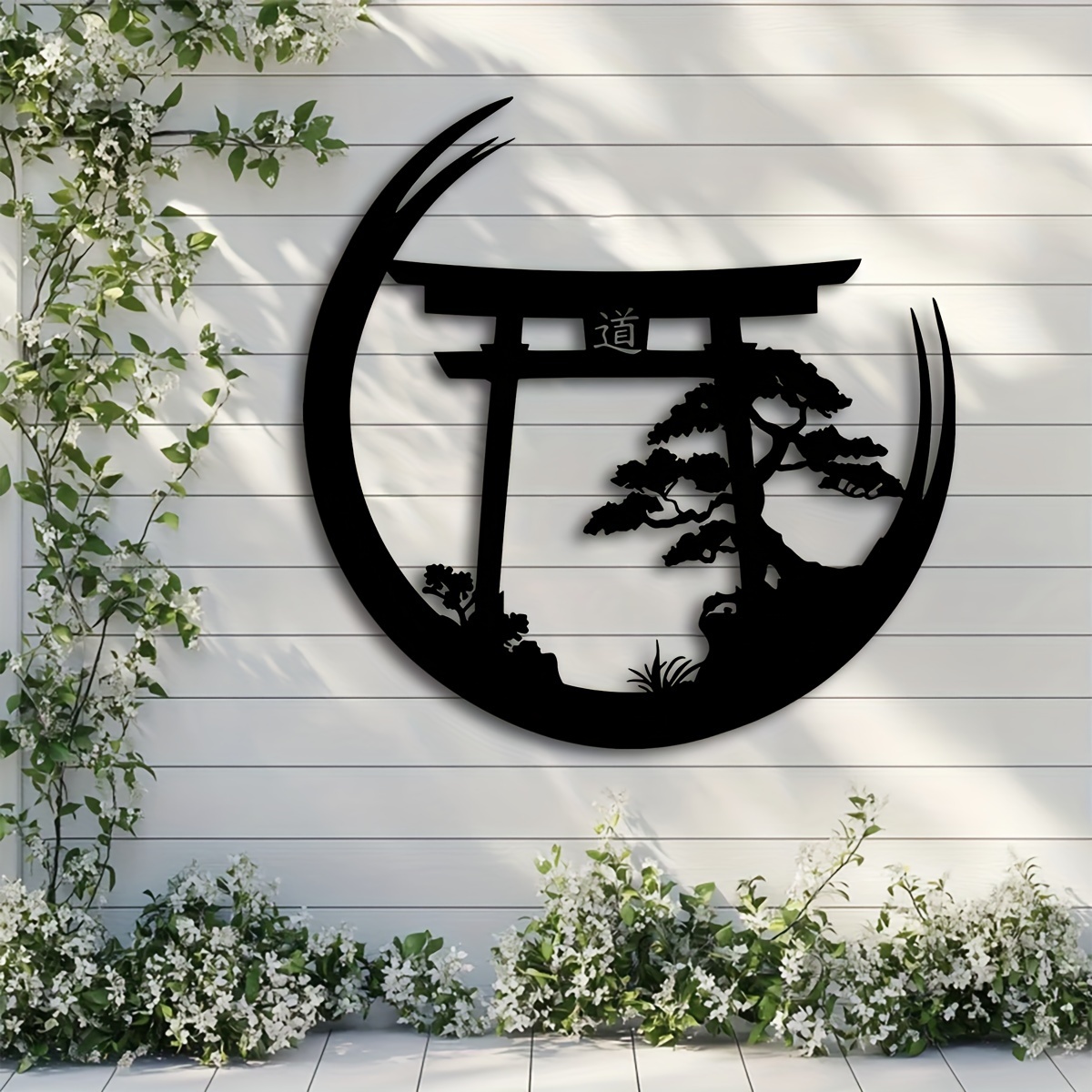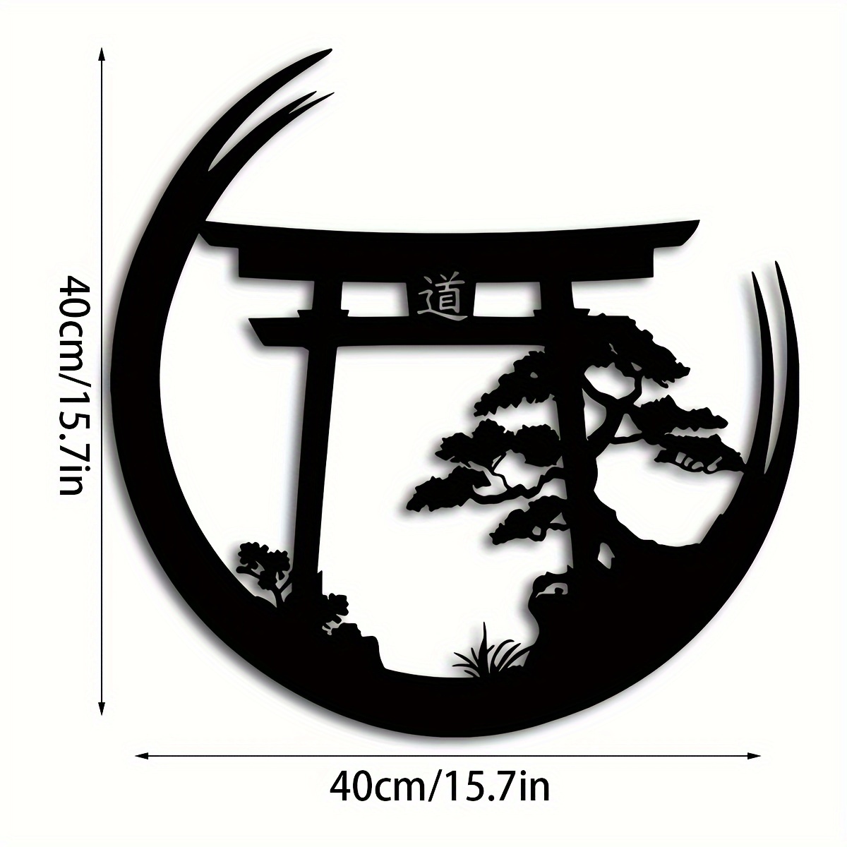 Mural decorativo en metal con diseño Tori y Bonsai para interiores