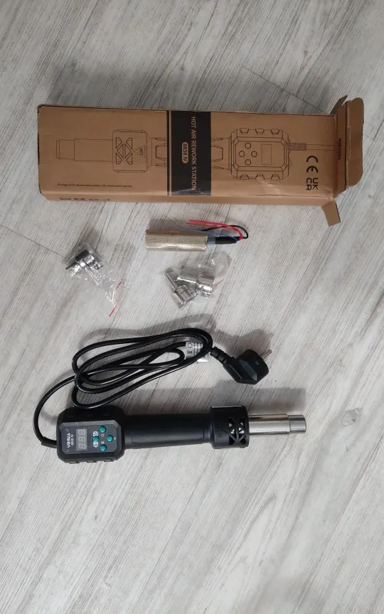 Un cañón maravilloso. La potencia es suficiente.. Es un producto ligero y silencioso. Falta un pico delgado algún trabajo sólo se puede hacer con un pico delgado. El cable es un poco grueso, podría ser más delgado después de todo, solo 700 vatios 0,75 milímetro ya está bien para 700 vatios. Sinceramente lo disfruté tanto que creo que compraré otro, es raro tener un producto tan bueno en AliExpress. Posee una auténtica certificación CE europea
